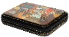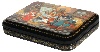 The palette for this piece contains a bright spectrum of vivid brown, blue, grey and red colors. Gold and silver paint, applied with extreme precision, details almost every aspect of the composition. The gold and silver detailing is so fine, in fact, that a brush with no more than a single hair was used in many areas.