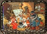 |               |  |  This marvelous box was painted by Nataliya Brovkina from the village of Palekh. It depicts Thumbelina who is the heroine of the Hans Christian Andersen's classic fairy tale. She was a tiny girl who was born from a flower. During the story she had many adventures, and met many animals including the Field Mouse and her neighbor, a Mole. The mouse suggests Thumbelina marry a Mole, but Thumbelina finds repulsive the prospect of being married to such a creature. She escapes the situation by fleeing to a far land with a swallow she nursed back to health during the winter.The composition depicts Thumbelina spinning yarn inside the Field Mouse's house. The artist has vividly painted the interior of the Mouse's hole, and the most interesting trait of the composition are two huge spiders producing a yarn thread depicted in the center of the composition.