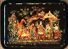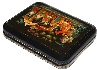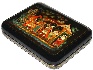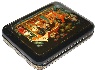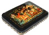The scene is brilliantly painted in Vlezko's signature style. The palette is rich and beautiful. Gold and silver paints are used to fill the composition with abundance of minute details and a magic luster. Gold is also used to decorate the box's exterior with beautiful patterns. On the box's sides these patterns are accented with aluminum.