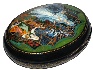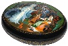 Description: This wonderful box has been painted by a talented Palekh artist, Marya Gurilyeva. Her works enjoy wide popularity among collectors all over the world. The subject is based on Hans Christian Andersen's popular fairy tale "The Snow Queen". In the left part of the composition we can see Kay who is the adopted son of the Snow Queen while the right part of the composition depicts Kay together with his grandmother and Gerda.