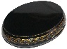 The box is made out of paper-mache made. Black lacquer covers the exterior and red lacquer covers the interior of the box. The exterior is decorated with intricate gold and silver ornaments. The box has a hinge above the composition and rests on a flat bottom. The work is signed with the artist's name, the year of 2010 and the village of Palekh.