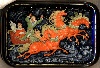 Description: Talented Vladimir Bogdanov of Palekh is the artist who painted this traditional scene of speeding winter troika.
