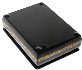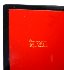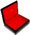 The box is made out of paper-mache. The exterior of the box is painted black; red lacquer covers the interior of the box. Elegant gold pattern can be found wrapping around the sides of the box. The box has a hinge to its left and rests on four small round legs. It is signed with the artist's name and title inside the box.