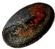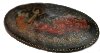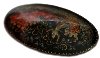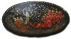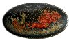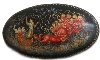 The brooch is constructed from paper-mache. Its exterior is covered with black lacquer. The work is signed with the name of the artist, the village of Palekh, and the year of 2016.