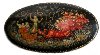 Description: Irina Peskova from the village of Palekh is the author of this stylish brooch. The brooch shows a traditional scene of speeding winter troika. A loving couple traverses the snow-covered expanses of Russian countryside sitting in the sledge pulled at high speed by three mighty horses.