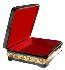 The box is made out of paper-mache made. Black lacquer covers the exterior and red lacquer covers the interior of the box. The lid is hinged at the top, and the box rests on four legs. The box is signed with the artist's name and Palekh.