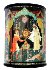 The palette contains bold and vivacious colors. Gold paint is used to detail the scenes throughout, figures of the characters, flowers and trees. Gold paint is also used to decorate the box's exterior with luxuriant ornaments.