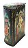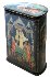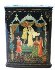 On the box's front side we can see the merchant bringing the magic scarlet flower to one of his daughters. On the lid the artist has drawn a girl(daughter of merchant) who approaches the monster's garden at his palace. And on the back sidewe can see a happy end with marriage of a daughter and beautiful prince, who used to be a beast.
