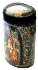 The scenes are painted in bright tempera paints, and richly detailed with gold and silver paints. Gold and silver paints are also used to decorate the box's exterior with intricate ornaments.
