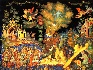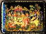 The boxes enclosed into the large box depict the scenes from the following Pushkin's tales: "Ruslan and Luydmila", and "The Sleeping Princess".