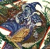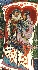 The composition is an utter delight. The palette is diverse and holds a wide range of colors. Smirnova is able to tightly compose the characters to give the scene maximum efficiency, without looking crowded or bunched up. She works in details with gold and aluminum paint that are fine and make the scene radiate with a tremendous glow. These lines are so thin that they give the characters and their surroundings the life-like clarity within this stylized world.