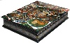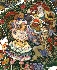Here the artist has drawn various characters from Lewis Carroll's classic tale "Alice in Wonderland". In the middle of the composition we can see Alice at the table holding Flamingo. The artist has drawn the tea party in the Hat's house. In the right upper corner we can see a Rabbit. Above her head the Cheshire Cat lies on a branch of the big tree.In the upper side we can see the Caterpillar who smokes the hookah while the right bottom corner depicts the Mouse crossing the pool of Alice's tears. In the left bottom corner we can see the violent Queen of Hearts who orders to chop off the three card gardeners' heads to her soldiers.