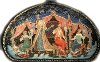 Description: This interesting dual-sided Palekh box was painted by famous artist and teacher Vladimir Vlezko.