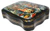 Black lacquer is used to paint the exterior of the box while red lacquer completes the interior.