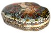 The box is made of good paper-mache made in the village of Palekh. The scene on the lid is decorated with rich ornament. And this ornament is continued on the sides of the box. The box has a hinge above the composition and rests on a wavy platform. It is signed with the artist's name, title and year(2015).