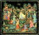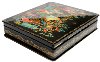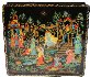 Description: This beautiful piece of genuine Russian artistry was composed by the leading Palekh artist Natalie Kornilova. She has crafted elegance within fantasy, a surreal composition of a well-known character of Cinderella. The characters have been dipped into gallons of personality. The setting is alive and full of flare. Add in the decorative elements of the piece and you have one very eclectic assembly of elegance and intricacy.