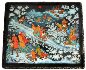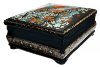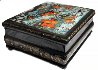 The composition is framed with thick golden dots on the edges of the lid. The sides of the box are decorated with very intricate pattern of gold and silver paint.