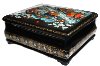 Black lacquer is used to paint the exterior of the box while red lacquer completes the interior.