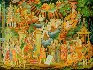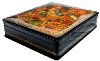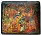 Here we can see Peter the Great who manages the construction of Saint-Petersburg. The scene is painted in red, brown, blue and green tempera paints, and richly detailed with gold and silver metal paints. Gold and silver paints wraps around the boxs sides.