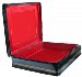 The box is made out of paper-mache. Black lacquer covers the exterior and red lacquer covers the interior of the box. The lid is hinged from the top of the scene, and the box rests flat. Signed with the year of 2002, Palekh, and the artists name of Vladimir Kurilov.