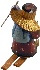 Description: This Christmas angel is manually carved out of wood and covered with bright paints. He is dressed in the yellow-greenish shirt and the lilac cloak. The ornament in the upper part of the shirt is painted with aluminum paints and highlighted with gold spangles. The button on the cloak (straight under the chin) is decorated with red spangles. In the bottom part of the doll the artist depicts two little angels. One of them plays the violin. The halos over their heads as well as the designs on their clothes are painted in gold paints. The faces of all angels are painted very well, their clothes are adorned with beautiful patterns, their wings are detailed with feathers. The doll has two detachable wings and the detachable stick modeled in the form of a cross and covered with gold paint. The work isn't signed by the artist.