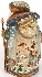 Description: This attractive Santa-Claus has been made in the town of Sergiev Posad. It is cut out of wood and painted with bright water-colors. Santa-Claus is dressed in the warm fur and hat; he carries the sack with presents for children on his back; in his left hand he holds the magic rod, and in his right hand he holds the basket. Santa's rode is removable, so it can be easily extracted from his hand. His fur and shirt are covered with bright, vivid winter scenes. The scene painted on his shirt (at the front side of the doll) features the merry girl holding a small kitten, and all around her spreads the beautiful winter landscape filled with peasant houses, trees and firs wrapped in white snow. The scene painted on Santa's fur (at the back of the doll) shows the girl feeding forest birds and all around her spreads the similar winter landscape that can be found on his shirt. Blue, white and light brown paints predominate here. Gold paint is used to paint the tip of the rod as well as its end. The most laborious work has been made while cutting out the face and the beard of Santa. This work has been done perfectly as the doll looks like a real wooden sculpture!