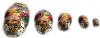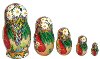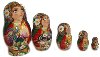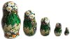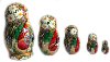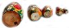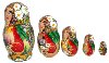It shows chicken family. Matrioshka is consist of five pieces and is made of wood.