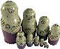 Description: This magnificent set of nesting dolls will satisfy the artistic tastes of any carping collector. It was painted by the famous artist Nadezhda Nepomnyashaya and includes ten dolls made out of wood. The similar work is pictured in the book "Russian Matryoshka" by Elena Fillipova. Each doll shows the mother and her children. The mother is traditionally dressed. She wears the light green shirt, the violet sarafan and the white apron. Her head is covered with the kerchief decorated with masterfully painted roses. The clothing of children is more diverse. They wear beautiful dresses, elegant suits, tracksuits and even the fisherman wear. The children are engaged in their hobbies. Some of them are depicted together with their pets: dogs, tortoises, cats; the others play musical instruments, catch fish, feed chicken, go shopping, play football and cook fried eggs. The characters' faces and their clothing are elaborately detailed. The works by Nepomnyashaya are recognizable owing to expressive faces of her characters, their big sad eyes, and this work isn't exception. Her works are also notable for poetry of image, exquisite style, beautiful coloring and detailed painting. The work is signed and dated (2005) by the artist.