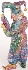All these scenes are mixed, and represent the whole and unseparated composition. Blue, pink and violet tones predominate here. Some parts of the doll are painted in gold paints like his shoes, gloves and collar, for example, while the other parts of its body are covered with silver dust.