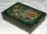 The scene is decorated with very intricate floral ornamentation accented with aluminum. In the right and left, upper corners of the lid this ornamentation is completed with the sprays of Lilac also drawn in gold and aluminum. Even more intricate and beautiful gold and aluminum ornamentation can be found wrapping around the box's sides.
