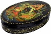 Description: This traditional Palekh box was painted by Nikolay Paramonov. It shows a scene from "The Tale of Tsar Saltan". Here the artist has chosen to depict the beginning of this tale. By the tsar's order, Tsar Saltan's wife and his son, Prince Gvidon, were sealed in the barrel that afterward was thrown into the sea. The barrel landed to a mysterious island. Getting out of the barrel Gvidon and his mother saw a magnificent palace where they would live later. They didn't know that this rich island would be Gvidon's property.