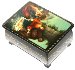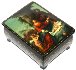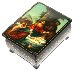 Description: This masterfully painted box was composed by a talented Yuriy Pozhidayev from the village of Palekh. His pieces have a unique elegance about them that captures the medieval essence of the tales he frequently uses as subject matter. Color and ornamentation work wonders when applied by an experienced hand. This piece is a great example of that!