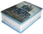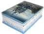 The sides of the box are decorated with a gold and silver ornamentation also painted on these non-traditional colored sides.