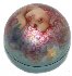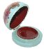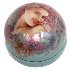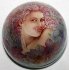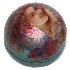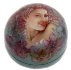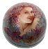 The portrait is painted against the shining silver background on a half sphere box. The face of a girl is drawn surround fresh Spring flowers.