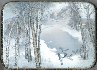 Description: Talented Fedoskino artist Sedov Nikolay has tried to get his emotions after the first snow morning into the painting on the small lacquer box. On this lacquer box we can see a view of a small village from the river. Wooden peasants houses located on the bank of the river are covered with the first snow.