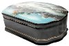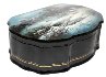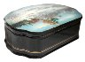 The painting is framed with a gold line. The sides of the box are decorated with two parallel gold lines, one thicker than the other.