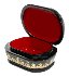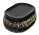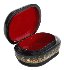 The exterior of this box was painted with black lacquer and the interior was painted with red lacquer. The sides of the lid are ornamented with gold scroll work, accented at the middle with red dots.