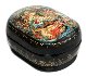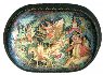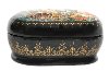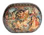 Description: This small, but very detailed box was painted by a talented Kholuy artist, Veronika Veselova. Veronika is a daughter of famous Kholui Master, Mikhail Veselov.This small box is an absolute treasure, it features major characters from the Russian tale of the Humpbacked Little Pony.