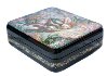 Feature of this composition is that painting was made on the large piece of mother-of-pearl, which covered the whole serface of the lid of the box. Needless to say, that only Fedoskino schools used to put pieces of mother of pearl in their composition. Now, that rule is brocken, Kholui artiists are also use this material in their works!