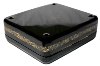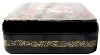 The box is made out of paper-mache. Black lacquer covers the exterior and red lacquer covers the interior of the box. A rich ornamental decoration of silver and gold wraps around the sides of the box, while a thin silver line frames the scene on the lid. This decoration is the perfect complement to the hard work and precise execution found in composition on the lid.