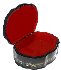 The box's lid is decorated with intricate gold patterns; the sides are decorated with silver and gold ornamentation.