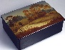 Description: This beautiful landscape was painted by the master of this genre, Yuriy Dubovikov. The composition perfectly reflects the state of nature before the sunset. Golden sunlight gradually covers the clear blue sky, and floods everything around with its golden radiance. Dark green grass that covers the riverbank, as well as the tops of dark green trees and bushes are highlighted with brown-reddish and orange tones of the setting sun. The mirror-like surface of the river, that reflects the sky, is also gold. Aluminum powder is used to enhance luminescence of the sky and the river. Gold dust seems to have been sprinkled in certain parts of the composition to add an almost unnoticeable sparkle to the piece.