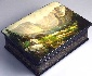 Description: This beautiful mountain landscape was painted by B.N. Morozov from Fedoskino. The grandiose panorama of a valley surrounded with the Altai Mountains opens up before the eyes of the viewer. The steep mountains are so high that it seems that they can touch the sky. Their summits are wrapped in clouds and almost invisible haze. The slightly sloping mountainsides and the valley are covered with green grass, tall slender firs and bushes. The composition is filled with fresh air and sunlight.