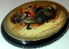 Description: N. Lavronnova from the village of Fedoskino created this splendid box. It features a scene from "The Nutcracker", a Christmas fairy-tale written by E.T.A Hoffman. The story tells about adventures of a little girl during the Christmas night. All her toys became alive and started speak like people. Her favorite toy, the Nutcracker, became her suitor and defender from the Mouse King. Here we can see the Nutcracker attacking the mice, the soldiers of three-headed Mouse King.