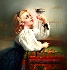 Yegeniy Dokuchaev of Fedoskino is the artist who painted the composition on this box. Here a young girl is pictured admiring her pet robin. She looks at it adoringly as it is perched comfortably on her finger. The robin is ruffling her feathers and preparing to sing a song to her beloved owner, who takes such good care of her. The robin loves when it can play outside of its cage and will make sure to make it worth the girl's effort by giving the girl some relaxing natural entertainment.