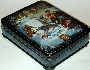 Description: This adorable piece of Russian artistry was composed by the talented Morozova from the village of Fedoskino. The subject is based on the Russian folk fairy-tale "The Fox and the Wolf". This tale tells how the Fox managed to deceive the Wolf. Once she found fish scattered not far from the ice-hole, and just at that moment the Wolf happened to go by that place. The sly Fox didn't want to share fish with the Wolf, and offered to catch fish by himself by means of his tail. She advised the Wolf to drop his tail into the ice-hole and left him. Some time later water in the ice-hole froze, and the Wolf couldn't to take his tail out of the ice-hole. Soon village woman carrying yokes and pails appeared near the ice-hole. They saw the Wolf and started to beat him. The Fox saw this scene, and to avoid revenge she smeared her head with pastry. When the Wolf found the Fox, and wanted to punish her, she said that the women had beaten her too. She added that the woman had beaten her so hard that the brains got out of her head. The Wolf was so sorry for the sly Fox that he offered to carry her on his back. Riding on his back she repeated the following words: "The beaten one carries the healthy one".