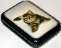 This small box is a creation of the Fedoskino artist Irina Dudkina, who is an admirer of cats. Here she depicts a charming kitten getting ready for a jump. The animal is painted with great detail and attention to correctly portraying its anatomical features. The artist also managed to catch playful mood of the kitten.