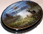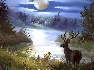 This thrilling landscape is a creation of A. Simonov from the village of Fedoskino. It shows the deer that has come to the river at night to drink water. The riverbank covered with dense vegetation is brightly illuminated by the full moon. It's silence. Nature rests after a long, hot, sunny day.