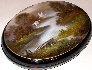 This peaceful summer landscape is painted in various shades of green and blue oil paints. Mother-of-pearl creates brilliance of the sky and the river.