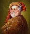 This box shows the half-length portrait of a happy old man painted in the realistic style.